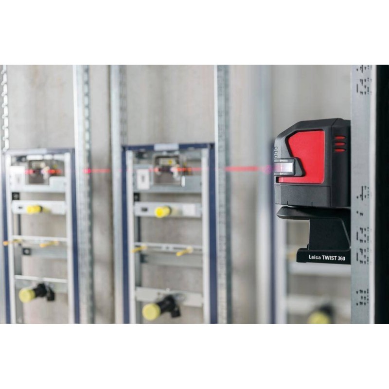 Der Leica Lino L2P5 verfügt über einen magnetischen Kompensator mit Arretierungsfunktion für den Einsatz auf schrägen Flächen. Das Gerät kann in Verbindung mit dem Detektor RGR200 auch im Außenbereich in Entfernungen von bis zu 80 m verwendet werden.
