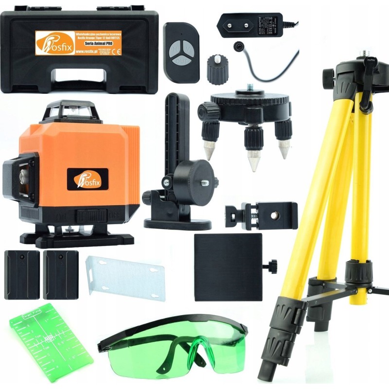 1️⃣ Rosfix Orange Tiger ROT12L Kreuzlaser: Ein professionelles Werkzeug mit hoher Genauigkeit. Mit diesem Laser lassen sich Schrägen markieren, und im Set erhalten Sie viele zusätzliche Komponenten, darunter ein robustes Stativ und eine praktische Tragetasche.