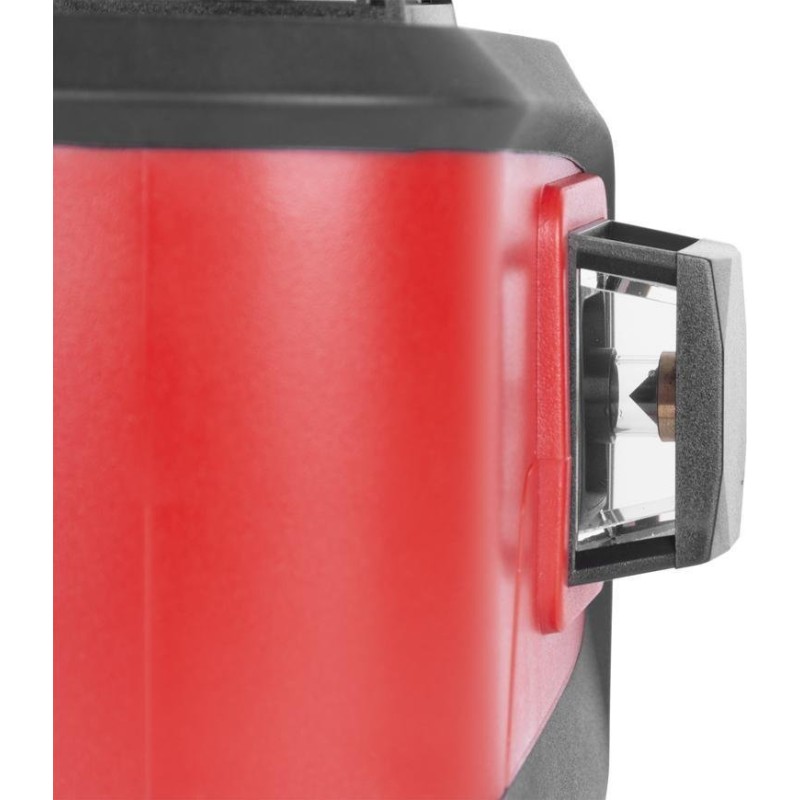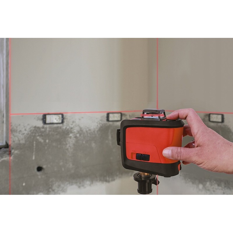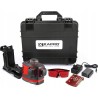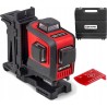 • einen Automatikmodus – er sendet eine horizontale 360°-Linie und/oder zwei vertikale 360°-Linien mit roten Strahlen aus.