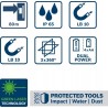 • Staub- und wasserdichtes Gummi-Gehäuse mit Schutzart IP65