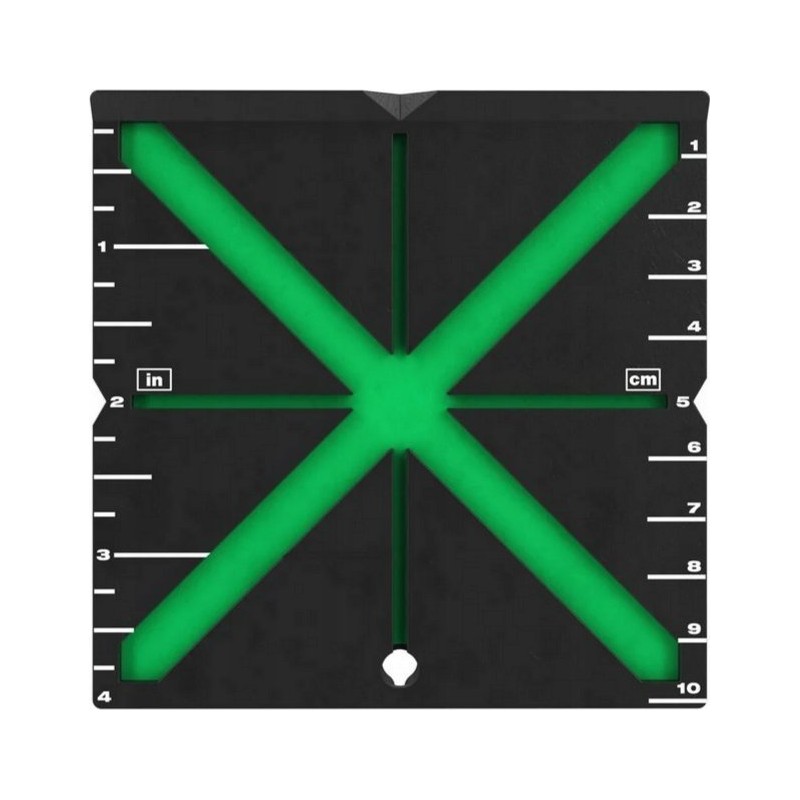 • Das X-förmige Linienmuster ermöglicht eine korrekte Zentrierung. Die Laserlinien werden exakt in der Mitte ausgerichtet, was den Prozess der Strahlkorrektur beschleunigt.