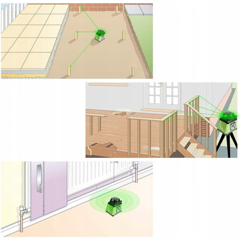 Der Huepar RL200HVG ist ein hervorragendes Werkzeug für vielfältige Bau- und Gartenarbeiten. Seine Vielseitigkeit macht ihn zur idealen Wahl für die Verlegung von Fußböden, den Bau von Wänden sowie für die präzise Ausrichtung von Zäunen. Dank seiner hohen Leistung und Präzision wird jedes Projekt einfacher und effektiver.