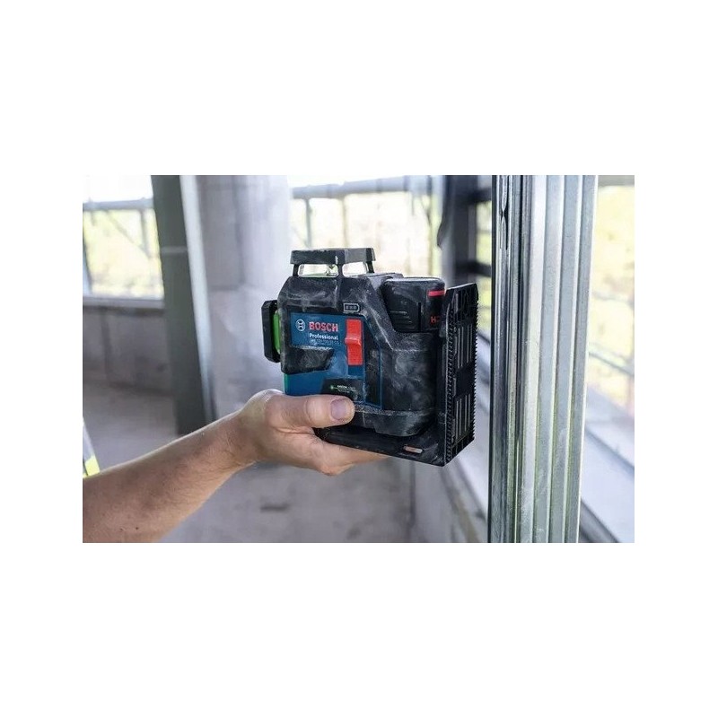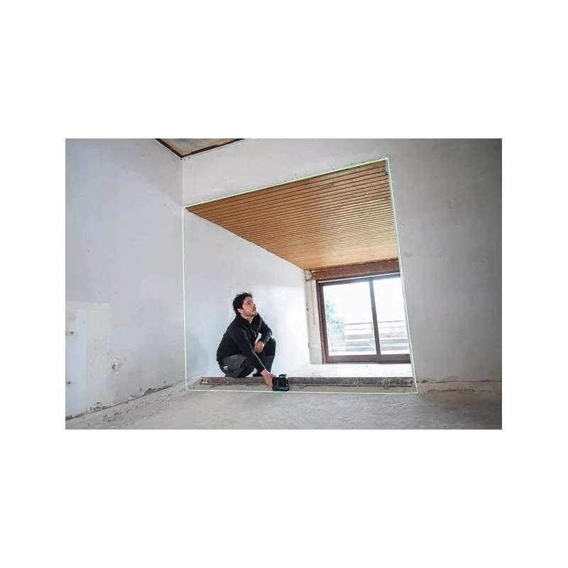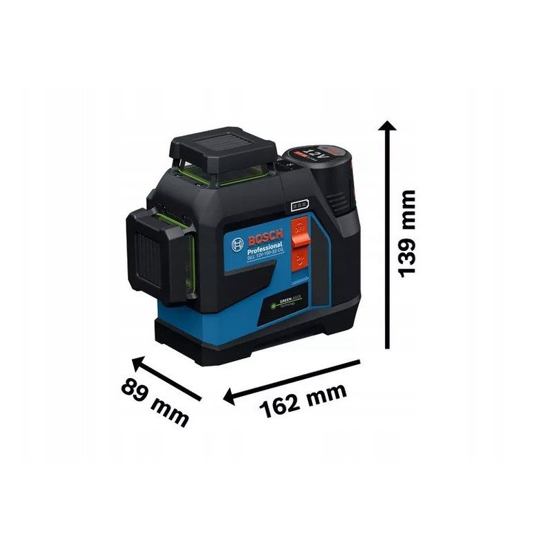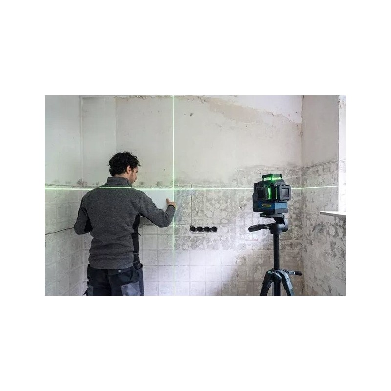 Der Bosch-Linienlaser GLL 12V-100-33 CG ist ein modernes Gerät, das dank dreier 360°-Laserlinien eine präzise Nivellierung in drei Ebenen gewährleistet. Ausgestattet mit einem grünen Laserstrahl bietet er eine bessere Sichtbarkeit im Vergleich zu herkömmlichen roten Lasern, was ihn zum idealen Werkzeug für vielfältige Bau- und Renovierungsanwendungen macht.