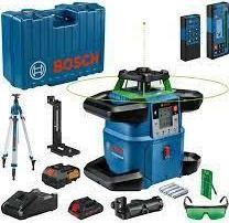 Bosch GRL 650 CHVG. Maximale Reichweite: 70 m, Nivelliergenauigkeit (±): 1,5 mm/m, Selbstnivellierbereich (±): 360°. Modell: Rotationsnivelliergerät, Produktfarbe: Schwarz, Blau, Grün, Stativgewinde: 5/8". Stromversorgung: Akku, Betriebsdauer: 60 h, Akkutechnologie: Lithium-Ionen (Li-Ion). Produktbreite: 327 mm, Produkttiefe: 188 mm, Produkthöhe: 278 mm. Verpackungsart: Karton