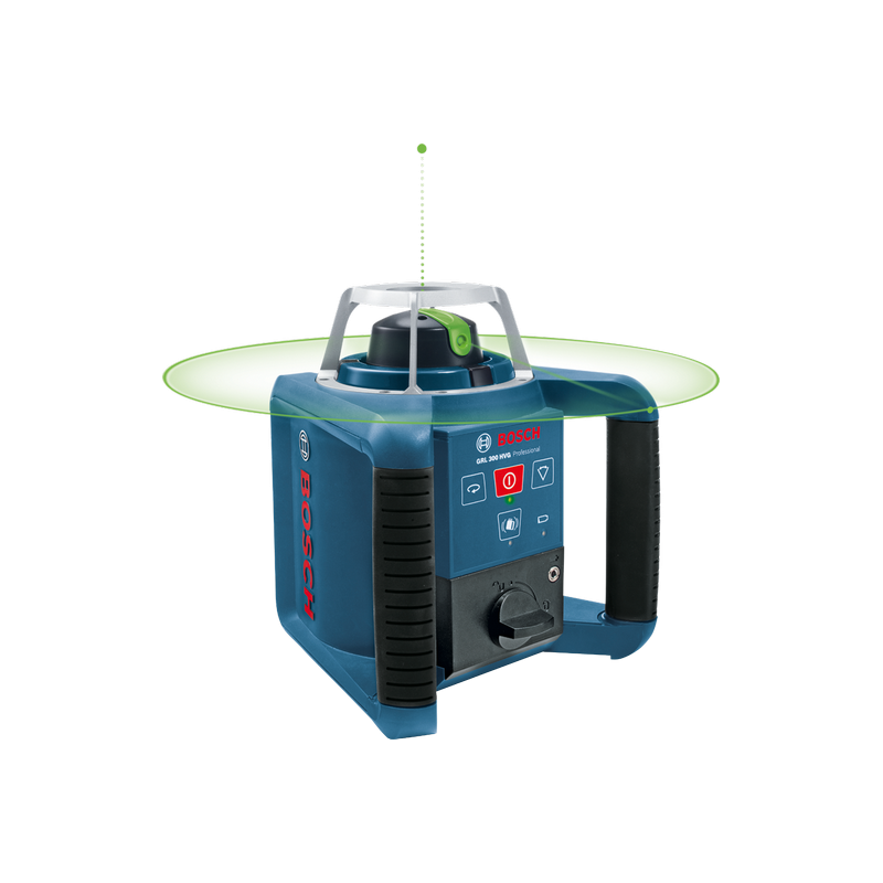 Rotierende Lasernivelliergeräte projizieren einen Lichtstrahl im Bereich von 360 Grad, sodass der Benutzer eine horizontale oder vertikale Ebene bestimmen kann. Tatsächlich handelt es sich bei diesem Lichtstrahl um einen einzelnen Lichtpunkt, der sich mit einer Geschwindigkeit zwischen 100 und 1100 Umdrehungen pro Minute drehen kann und so den Eindruck einer 360-Grad-Linie vermittelt. Der Lichtstrahl wird durch eine sogenannte Diode erzeugt, bei der es sich in diesem Fall einfach um einen Halbleiter handelt, der Licht erzeugt, wenn Strom durch ihn fließt.