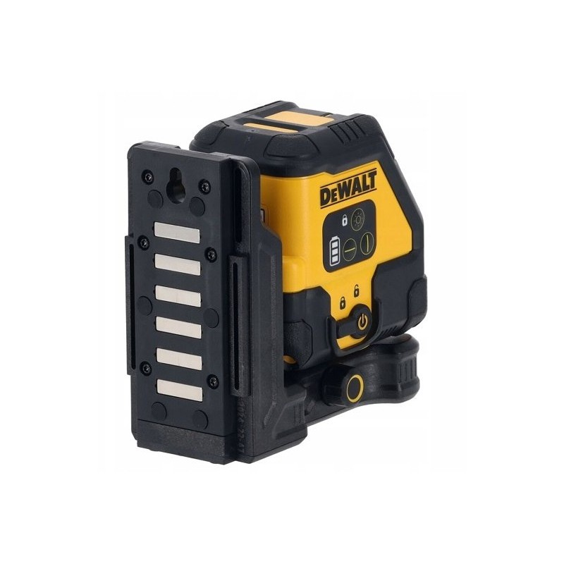 Der DeWALT DCLE14201GB Kreuzlinienlaser ist mit starken Magneten im Sockel ausgestattet, die eine stabile Befestigung an Metalloberflächen ermöglichen. Darüber hinaus erweitert die Möglichkeit der Montage auf einem Stativ mit 1/4"- oder 5/8"-Gewinde den Einsatzbereich in verschiedenen Situationen.