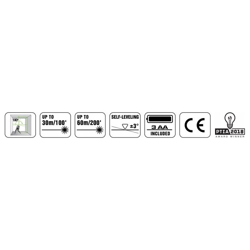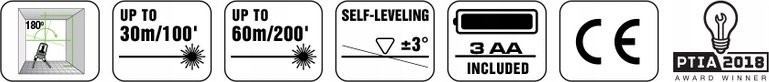 • Laserreichweite im Innenbereich: 30 m (100 ')
