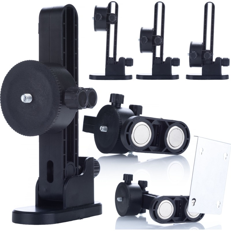 ✔️ Praktische Lösung: Die Wandhalterung ist unverzichtbar, wenn ein Standardstativ zu niedrig oder unpraktisch ist. Dank ihr gibt es keine Einschränkungen hinsichtlich des Montageortes der Wasserwaage, und der Benutzer kann das Werkzeug bequem nutzen.