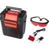 - Betriebsdauer: ca. 6 Stunden (bei eingeschalteten Lasern)