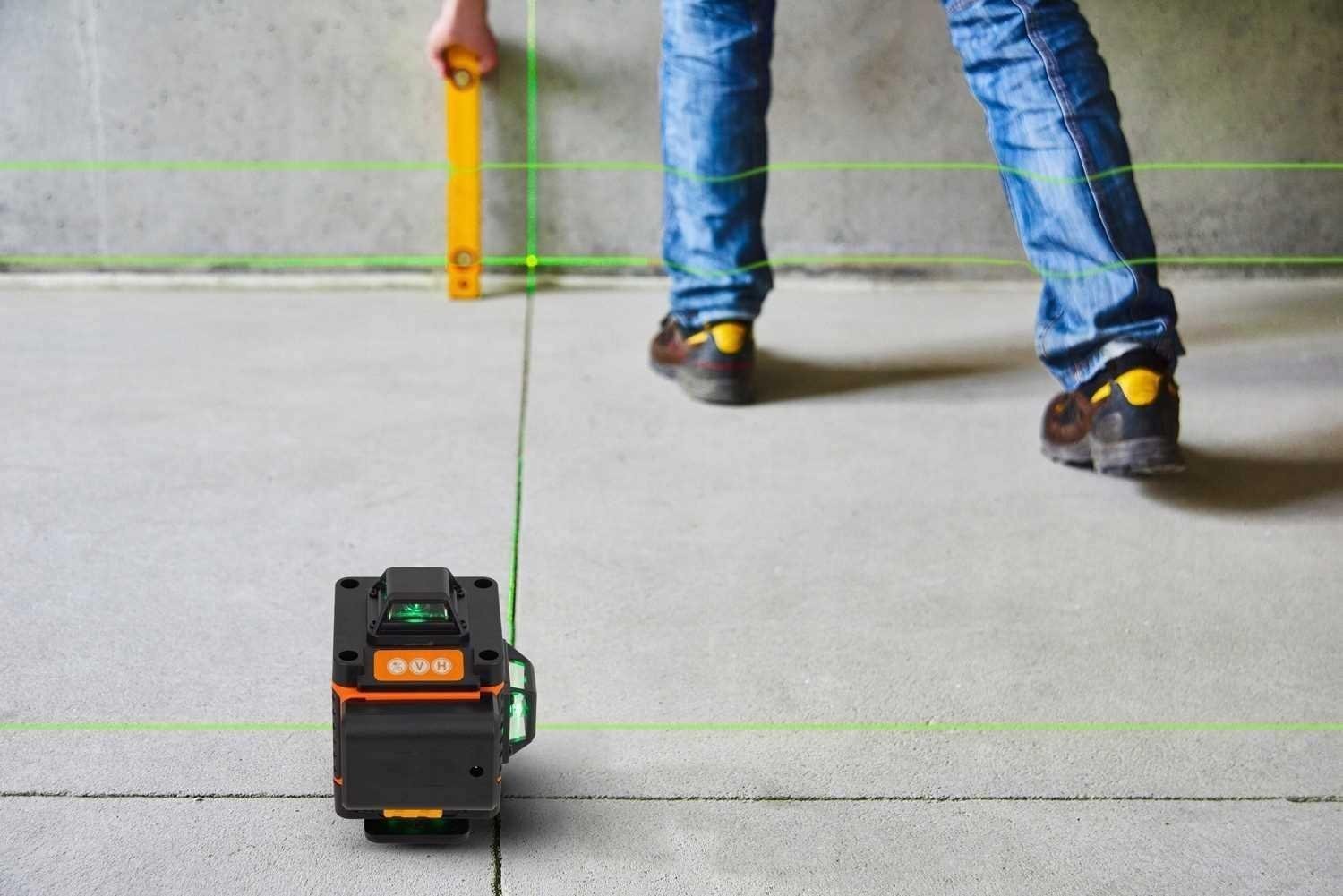 Die einfach zu bedienende 360°-Laserwasserwaage hilft Ihnen nicht nur beim Verlegen von Fliesen auf dem Boden, sondern auch an der Wand. Gleichzeitig projiziert sie horizontale und vertikale Linien mit hoher Präzision, sodass Unebenheiten ausgeschlossen sind.