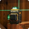 Dieser Laser ist mit einem grünen Strahl ausgestattet. Dieser ist viermal besser sichtbar als ein roter Laser. Dadurch ist es möglich, Messungen unter schwierigeren Lichtverhältnissen in Innenräumen durchzuführen. Bei der Arbeit mit dem grünen Laser ermüdet das Auge weniger, da diese Farbe vom Sehorgan besser wahrgenommen wird. Die Strahlen werden mithilfe eines magnetischen Kompensators mit Warnfunktion bei Verwindung selbstnivelliert.