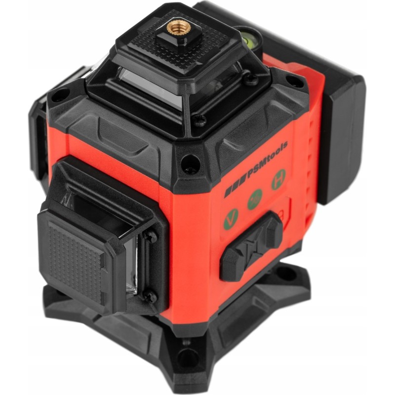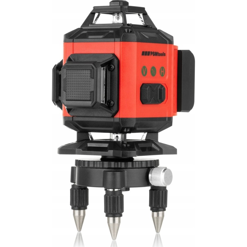 Der Kreuzlaser strahlt Strahlen in vier Ebenen aus. Jeder Strahl hat einen Bereich von 360 Grad und ist grün. Zwei parallele horizontale Strahlen und zwei vertikale Strahlen, die sich im 90-Grad-Winkel kreuzen. Die Anzeige ist in jeder beliebigen Konfiguration möglich.