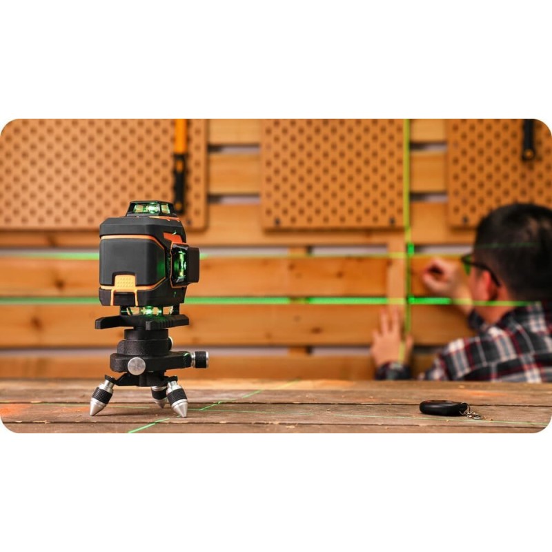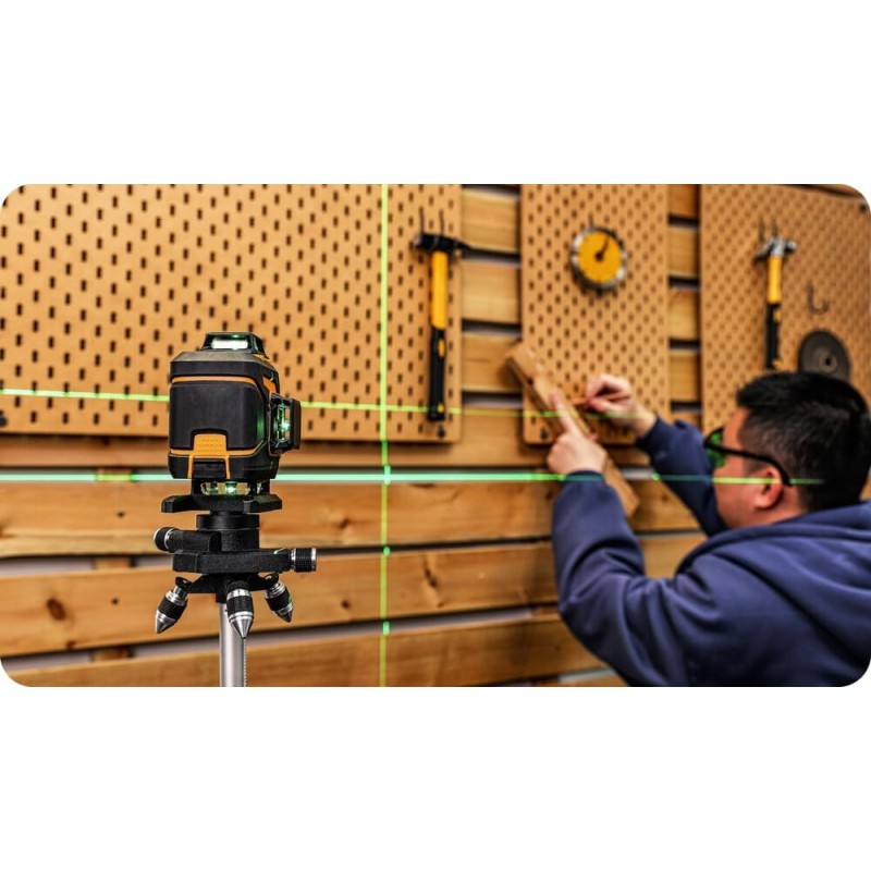 Dieser Laser ist mit einem grünen Strahl ausgestattet. Dieser ist viermal besser sichtbar als ein roter Laser. Dadurch ist es möglich, Messungen unter schwierigeren Lichtverhältnissen in Innenräumen durchzuführen. Bei der Arbeit mit dem grünen Laser ermüdet das Auge weniger, da diese Farbe vom Sehorgan besser wahrgenommen wird. Die Strahlen werden mithilfe eines magnetischen Nivellierers mit Warnfunktion bei Unebenheiten selbstnivelliert.