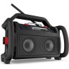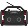 Das Radio ist wasser-, staub- und schmutzabweisend (Schutzklasse IP65) und damit der ideale Begleiter auf der Baustelle. Es verfügt über eine Akku-Ladefunktion und kann auch über das Stromnetz betrieben werden. Darüber hinaus verfügt das Radio über eine DSP-Funktion zur digitalen Klangverarbeitung sowie einen Equalizer zur Klangregelung.