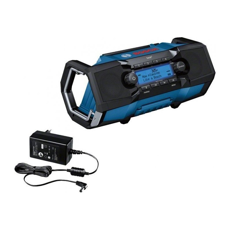 Technische Daten:Eingangsspannung Akku: 18 VNetzspannung: 100 – 240 VGewicht ohne Akku: 2,5 kgFM-Frequenzbereich: 87,5 – 108 MHzDAB+-Frequenzbereich: 174,928 – 239,2 MHzFM-Speicherplätze: 8DAB+-Speicherplätze: 8 Speicherplätze: 16 Netzausgangsspannung: 18 V Nennleistung des Verstärkers (bei Netzbetrieb): 15 W Hervorragender Klang im handlichen Format: vielseitiges und tragbares Baustellenradio Außergewöhnliche Flexibilität und angenehmer Betrieb dank der Audioquellen DAB+, Bluetooth, FM und AUX. Zeichnet sich durch intuitive Bedienung und schnelle Konfiguration aus und verfügt über einen Griff und einen Haken für den vertikalen und horizontalen Einsatz. Einzigartiger Stereoklang dank der Möglichkeit, zwei Radios mit einem Smartphone zu verbinden. GPB 18V-2 SC PROFESSIONAL. Kartonverpackung. 1 Netzadapter DC-in (Ersatzteil-Artikelnummer 1 619 PB4 880)1 AUX-Kabel1 runde 3-V-Lithium-Batterie CR 2032**Symbolfoto...