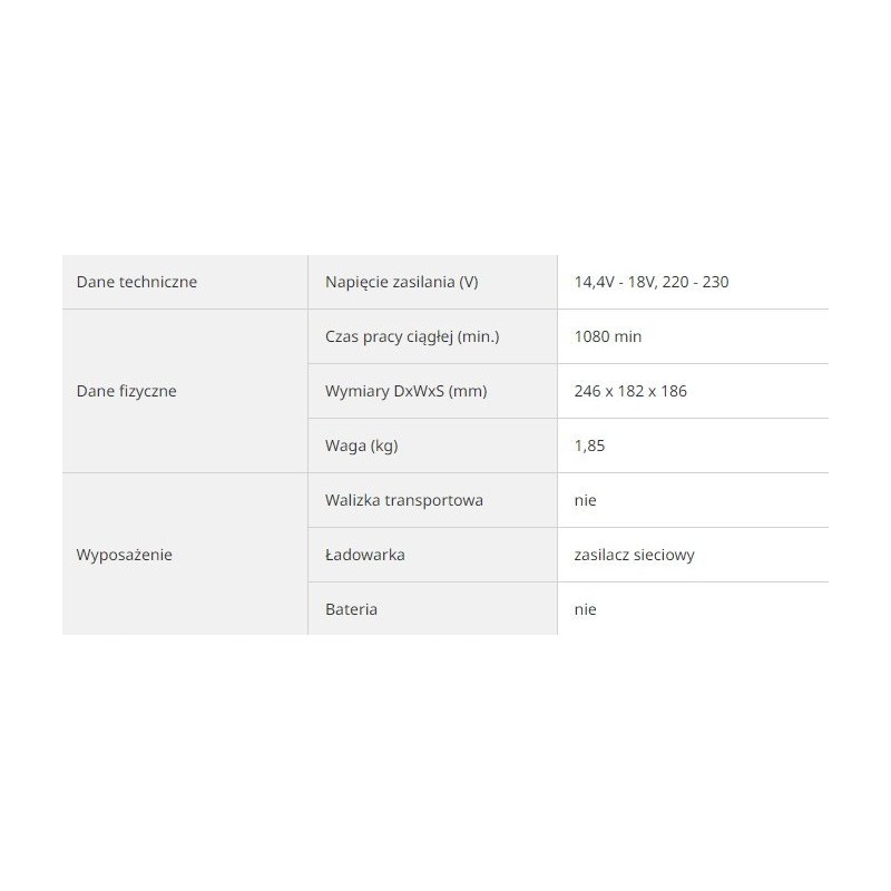 • Versorgungsspannung (V): 14,4 V – 18 V, 220 – 230