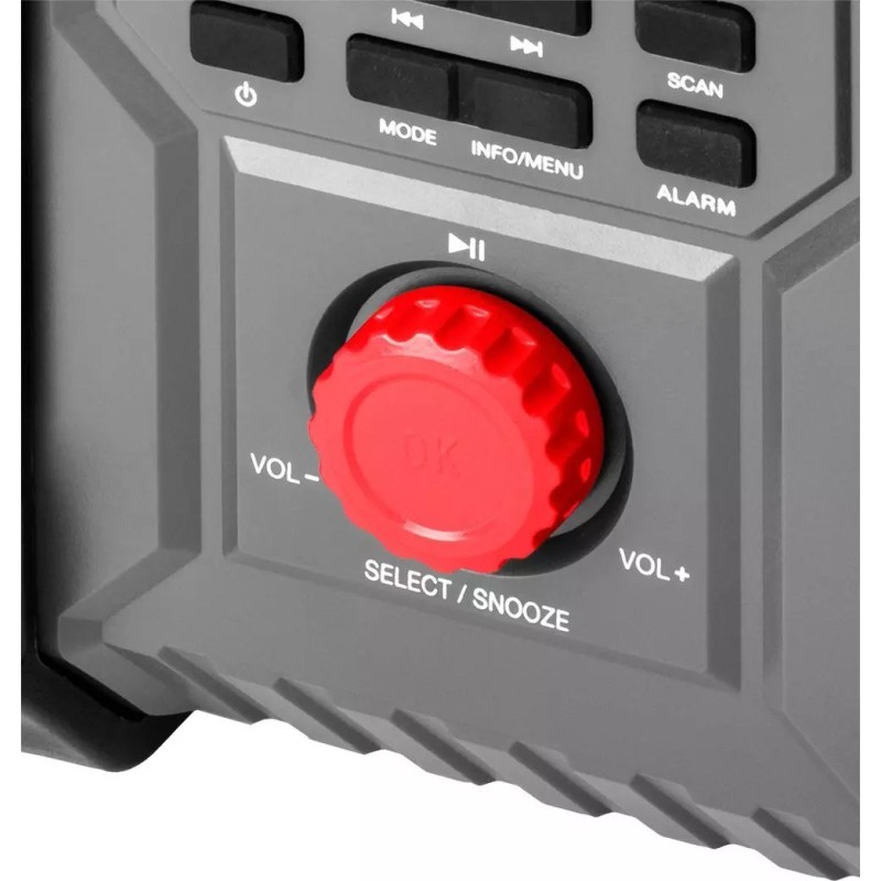 Es besteht auch die Möglichkeit, beispielsweise ein Mobiltelefon anzuschließen (im Gehäuse befindet sich eine spezielle Halterung für das Handy) und eigene Musik über Bluetooth 5.0 abzuspielen. Das Radio ist zudem mit einer praktischen Weckfunktion, einer Sleep-Funktion sowie einer Uhr mit automatischer Einstellung ausgestattet. Es ermöglicht das Abdunkeln oder Aufhellen des Displays. USB- und AUX-Anschlüsse erhöhen die Vielseitigkeit des Radios. Dieses Gerät der Marke GRAPHITE bewährt sich in vielen Situationen!