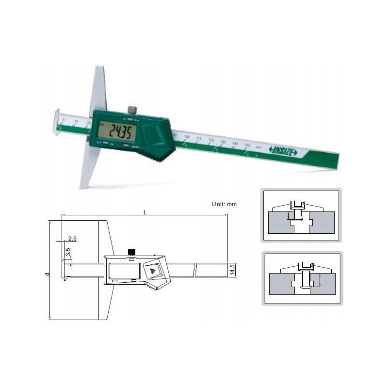 Elektronischer Haken-Tiefenmesser der Marke Insize, beidseitig mit Schraube