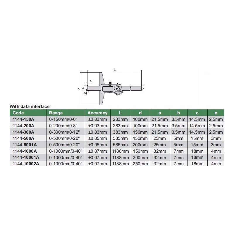 Elektronischer Haken-Tiefenmesser, beidseitig, mit Schraube, Messbereich 200 mm/8" INSIZE (1144-200A)