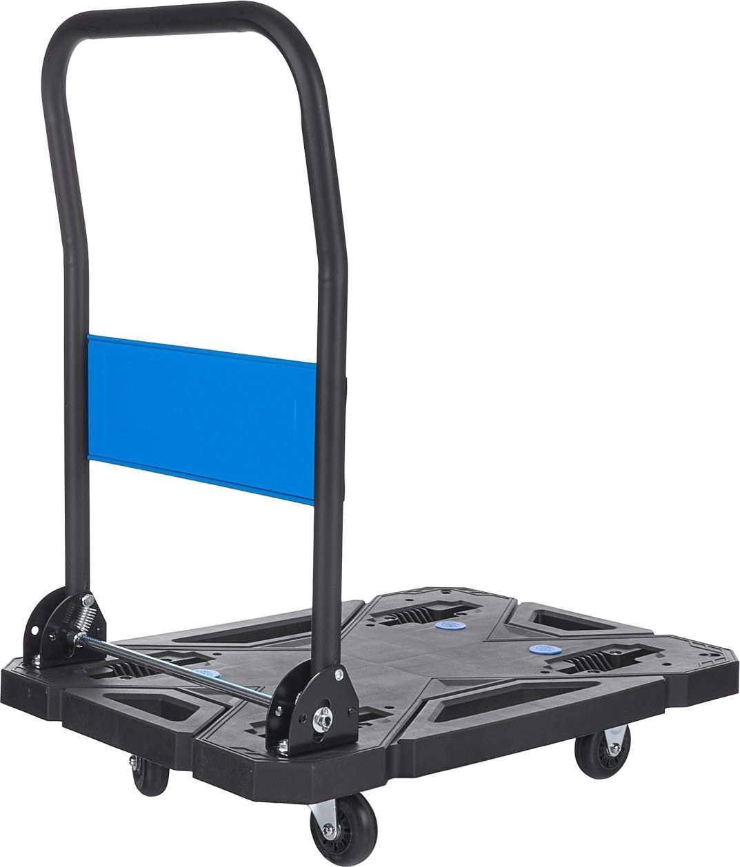 • Einfache Manövrierbarkeit: Dank der schwenkbaren Räder mit Kugellagern lässt sich der Wagen auch bei maximaler Belastung leicht lenken