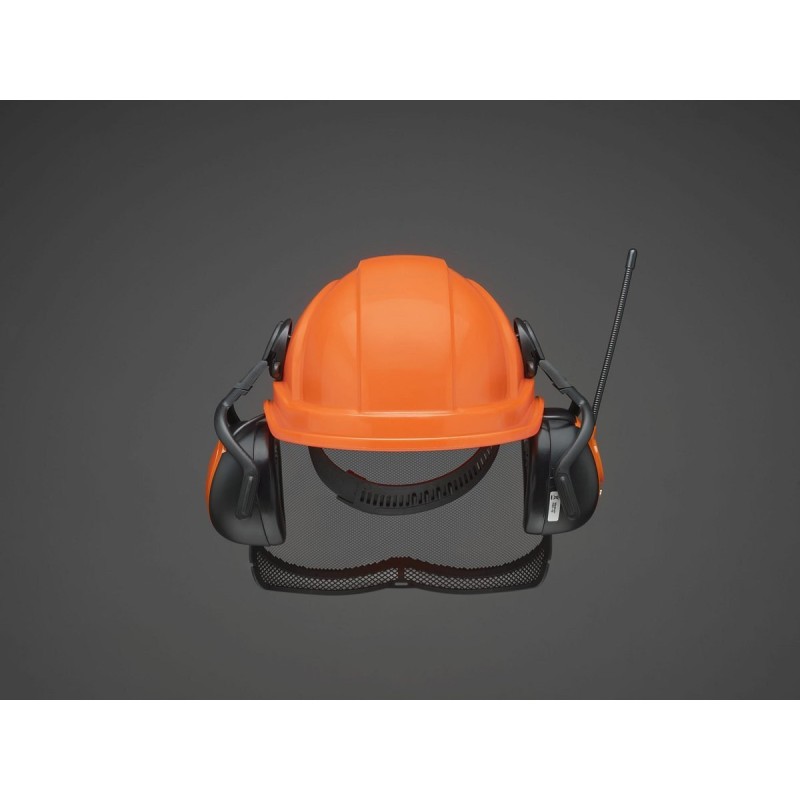 Ein Helm für Forstwirte, die bei ihrer täglichen Arbeit auf Sicherheit und Komfort Wert legen. Ausgestattet mit einem UltraVision-Visier, das das einfallende Licht um ca. 20 % reduziert, einem Sechs-Punkt-Befestigungssystem für Komfort und geringeren Druck auf den Kopf sowie einem Gehörschutz mit FM-Radio. Der Gehörschutz bietet eine verbesserte Dämpfung und Klangqualität.
