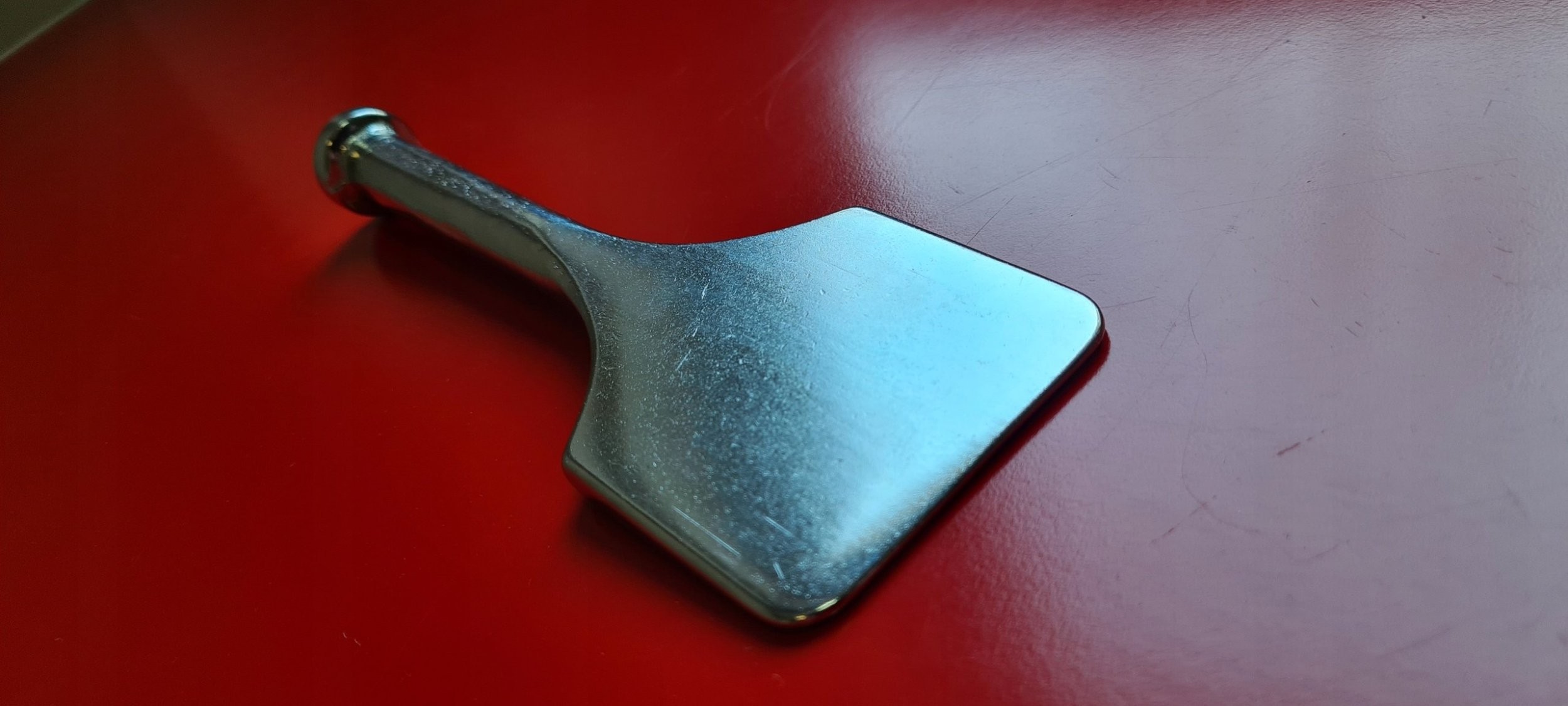10 cm. Der neue Anpresser wird bei der Verlegung von Bodenbelägen verwendet: auf Treppen, in Ecken, an Leisten. Aus poliertem Stahl gefertigt.