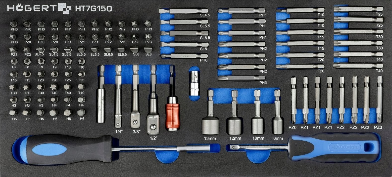 • Schraubendreherbits aus hochwertigem S2-Stahl, Steckschlüsseleinsätze und Zubehör aus Chrom-Vanadium-Legierungsstahl;