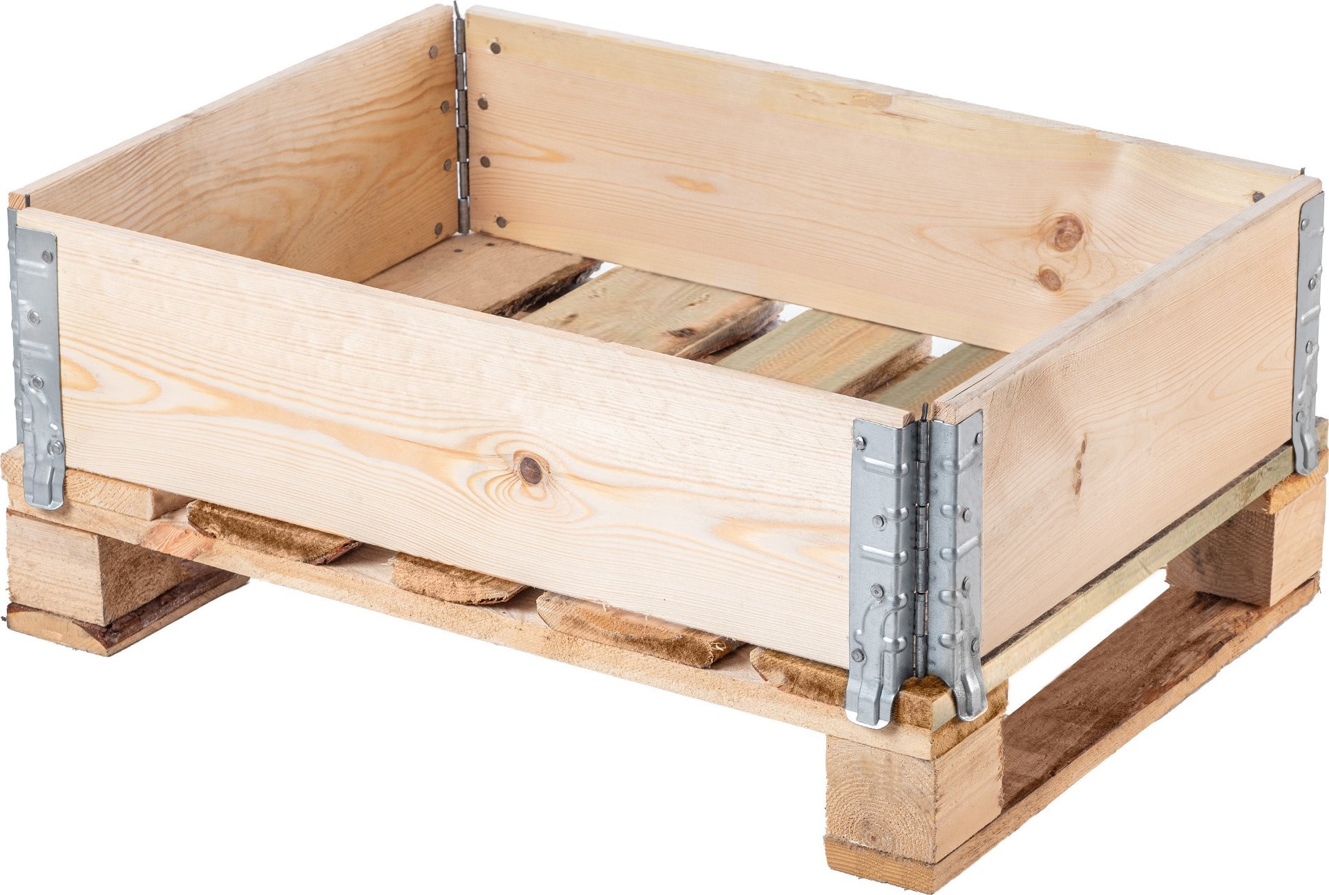 UMWELTFREUNDLICH – Die angebotenen Palettenaufsätze bestehen aus gehobeltem Nadelholz und sind mit verzinkten, vernieteten Scharnieren ausgestattet, die eine lange Lebensdauer gewährleisten.