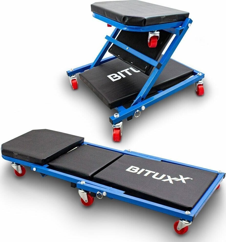Bituxx Klappbare mobile Werkstattliege auf Rollen – Hocker für die Garage BITUXX