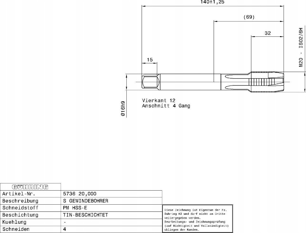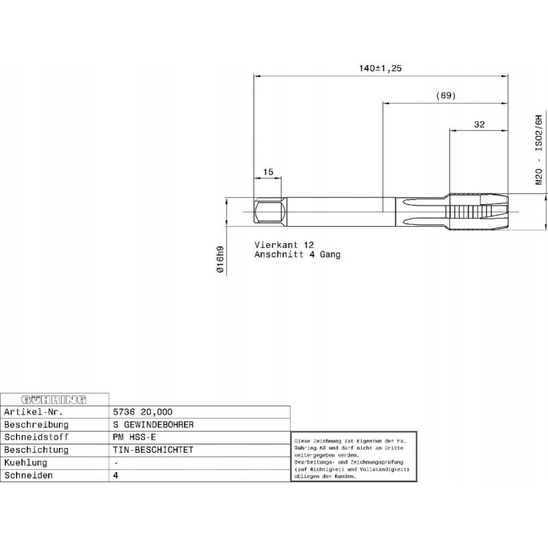 Gewindebohrer HSS-E-PM TiN GUHRING M14 x 2,0