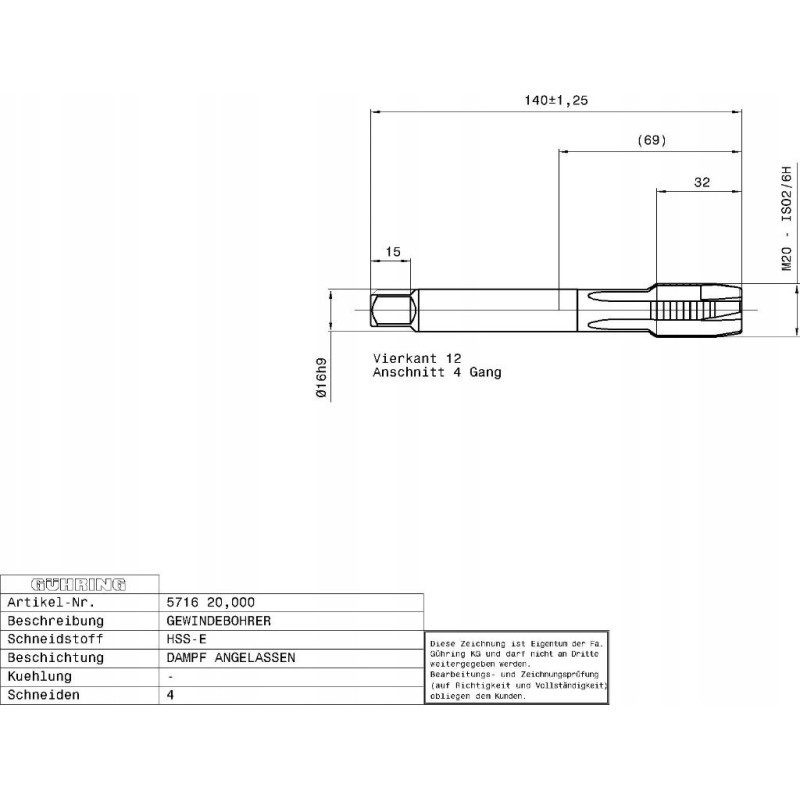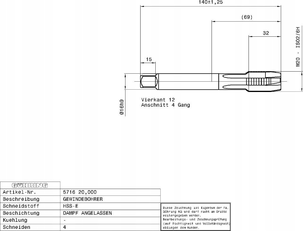 Gewindeschneidmaschine GUHRING HSS-E 5716 DIN 376 M20 x 2,5