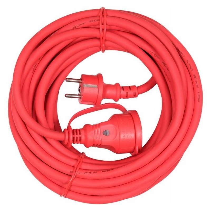Baustellenverlängerungskabel mit staub- und spritzwassergeschützter Steckdose und integrierter LED, die die Spannungsversorgung anzeigt. Das Kabel mit einem Mantel aus chloriertem Polyethylen (CPE) eignet sich sowohl für den Innen- als auch für den Außenbereich. Es ist beständig gegen Öle, Säuren, die meisten Lösungsmittel und Sonneneinstrahlung. Es behält seine Flexibilität bei Frost. Es ist nicht brennbar. Es zeichnet sich durch eine hohe Alterungsbeständigkeit aus.