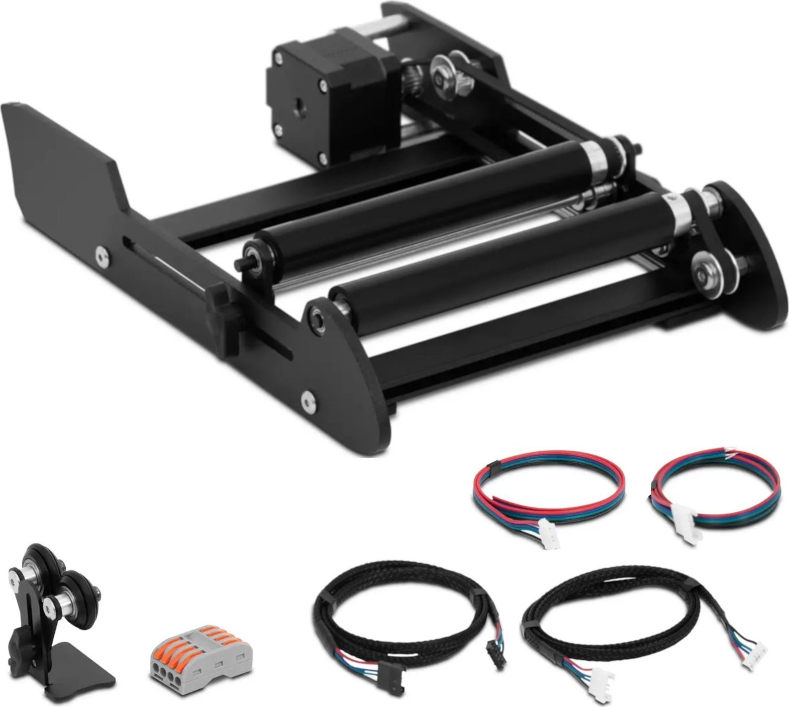 • - Die Drehrolle erweitert die Möglichkeiten der Lasergravurmaschine und verziert runde Objekte wie Tassen, Gläser oder Flaschen,