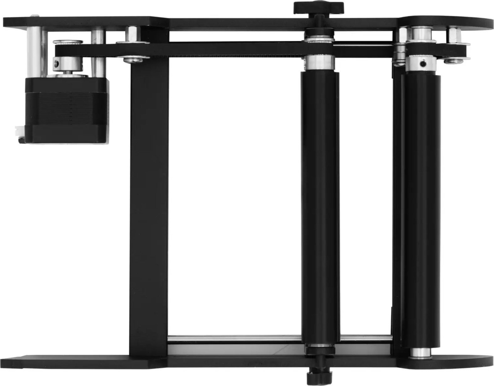 • - Ein stabiler Aluminiumrahmen hält die Drehrolle sicher unter der Lasergravurmaschine.