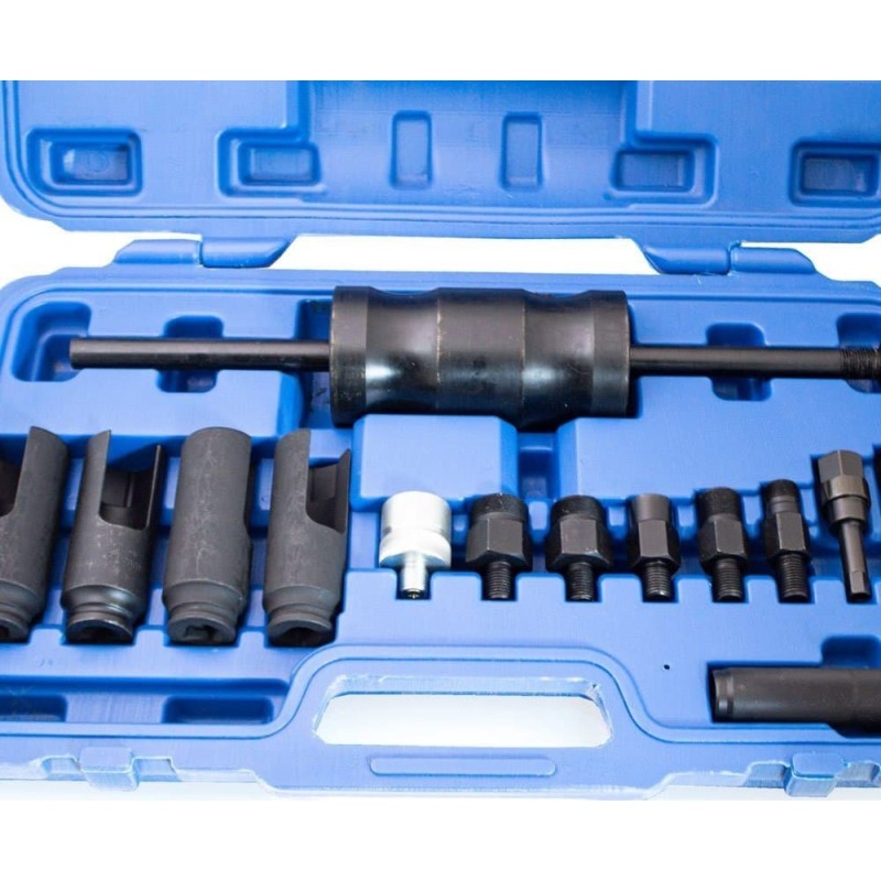 Mit diesem Abzieher-Set lassen sich festsitzende Einspritzdüsen aus CDI-, CRDI-, CR- und HDI-Systemen einfach und schnell entfernen.