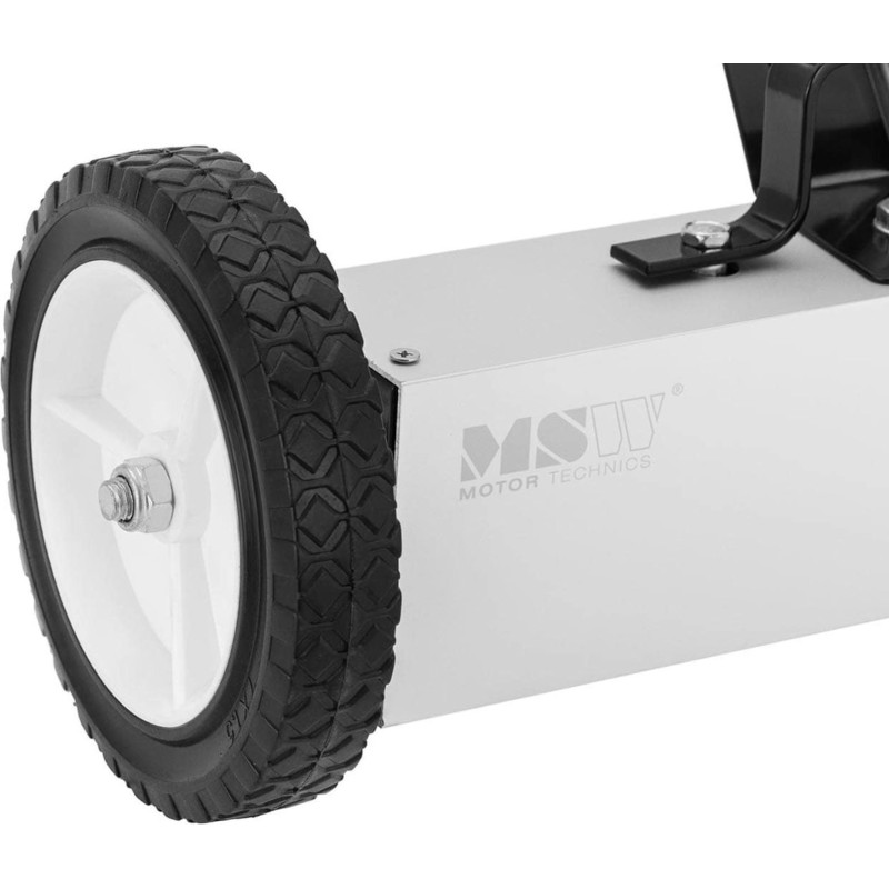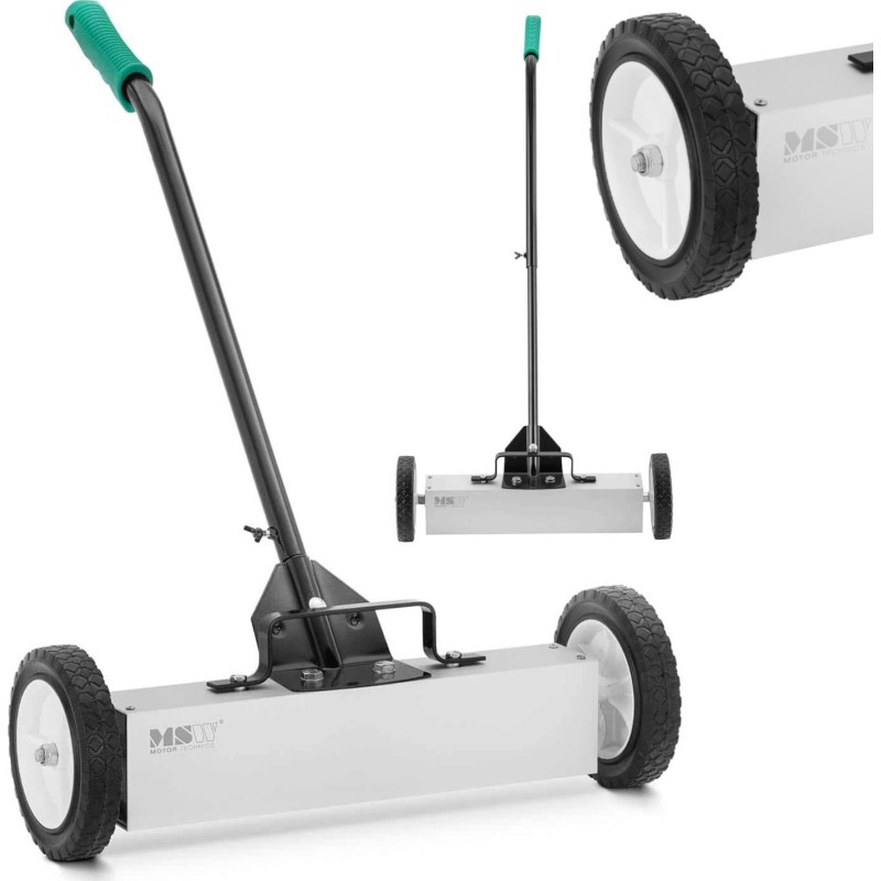 Der Magnetbesen der Marke MSW verfügt über einen starken Ferritmagneten. Er sammelt erfolgreich Schrauben, Späne, Nägel, Nadeln und andere kleine Metallteile. Damit lassen sich Gehwege, Rampen, Ladenflächen, Sportplätze, Werkstätten, Baustellen oder Parkplätze reinigen. Der Besen verfügt über einen verstellbaren Stiel im Bereich von 73 bis 100 cm . Die Breite des Besens beträgt 45 cm . Die Reinigung des Magneten erfolgt schnell dank des Entriegelungsgriffs am Gerät. Große Räder sorgen für die Wendigkeit des Geräts und bewähren sich sogar auf unbefestigten Oberflächen.