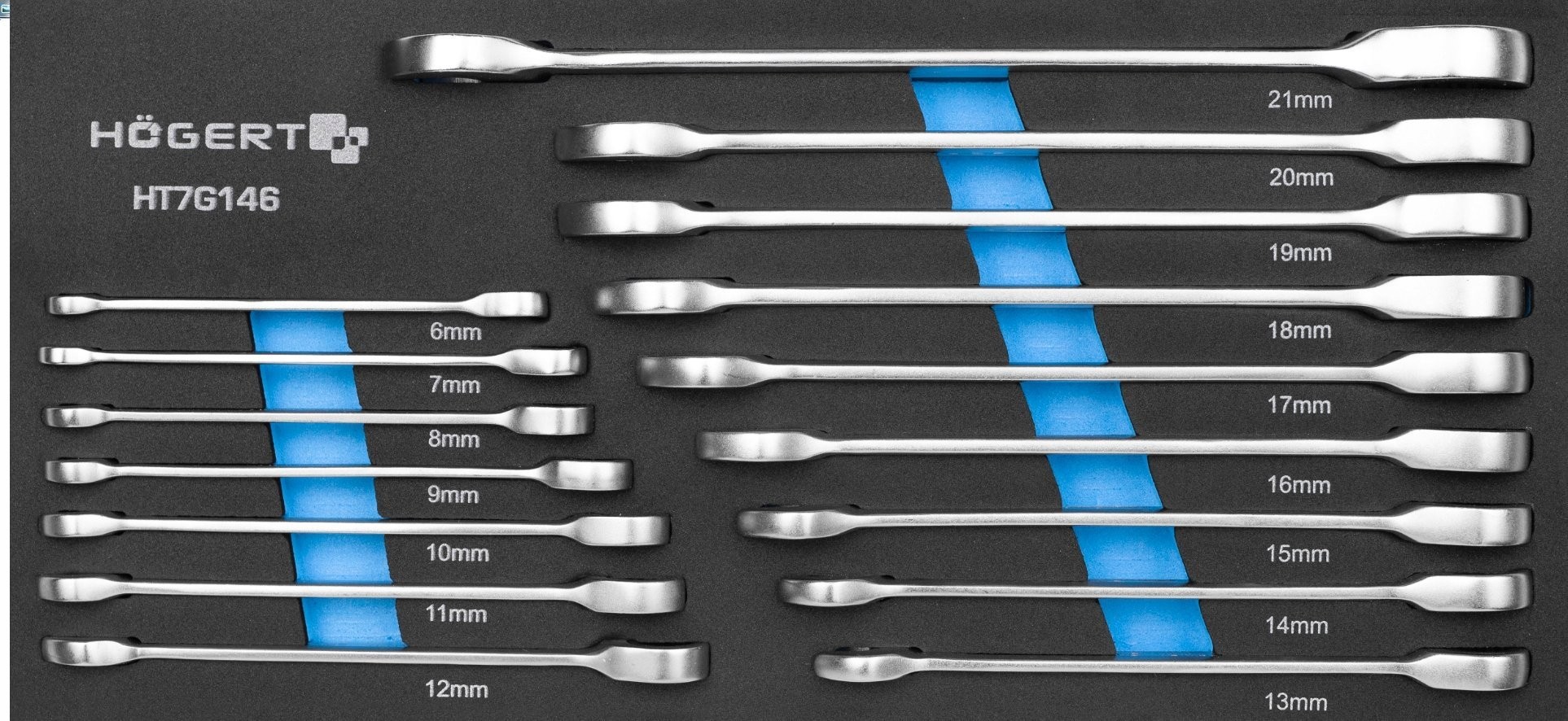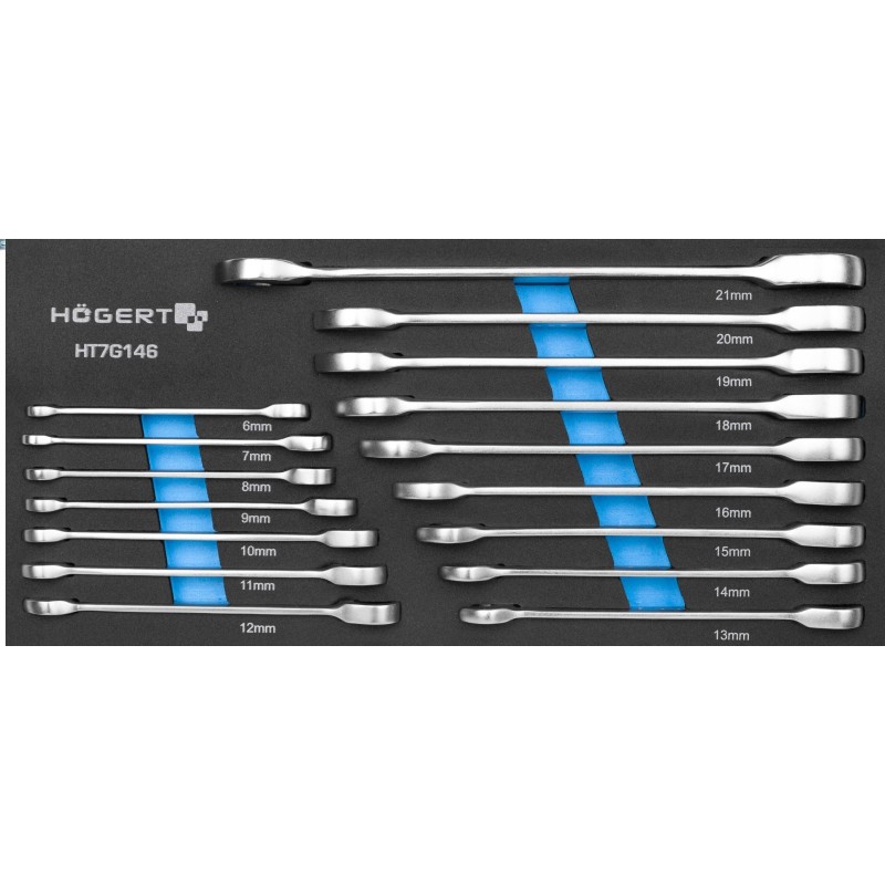 HOGERT Ein-Augen-Schraubenschlüssel mit Ratsche, 16-teilig / EVA-Einsatz