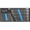 Einsatz für Werkzeugschränke mit Ratschenschlüsseln, die zum Lösen und Anziehen von Schraubverbindungen mit Sechskant-, Zwölfkant- oder TORX-Befestigungselementen dienen. Dank der Ratsche ist ein Umschalten des Schlüssels nicht erforderlich.