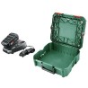 Das Set wird in einer praktischen SystemBox geliefert, die eine übersichtliche Aufbewahrung von Elektrowerkzeugen und Zubehör in verschiedenen Größen ermöglicht. Zudem informiert die „Ready to go“-Anzeige über den Ladezustand des Akkus, sobald dieser 80 % erreicht hat.