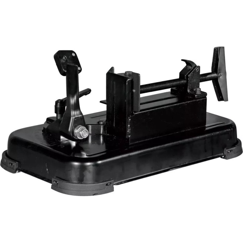 Die Verwendung des Ständers ermöglicht stabiles Schneiden und die Einstellung des Schnittwinkels im Bereich von 0 bis 45°. Der verstellbare Halter ist an einer Gewindespindel angebracht und verfügt über eine Schnellverstellfunktion, wodurch das zu schneidende Material sicher fixiert werden kann. Gummifüße verhindern ein Verrutschen des Ständers auf der Arbeitsfläche.