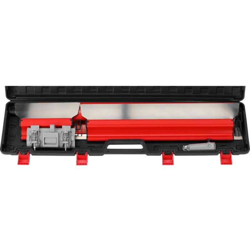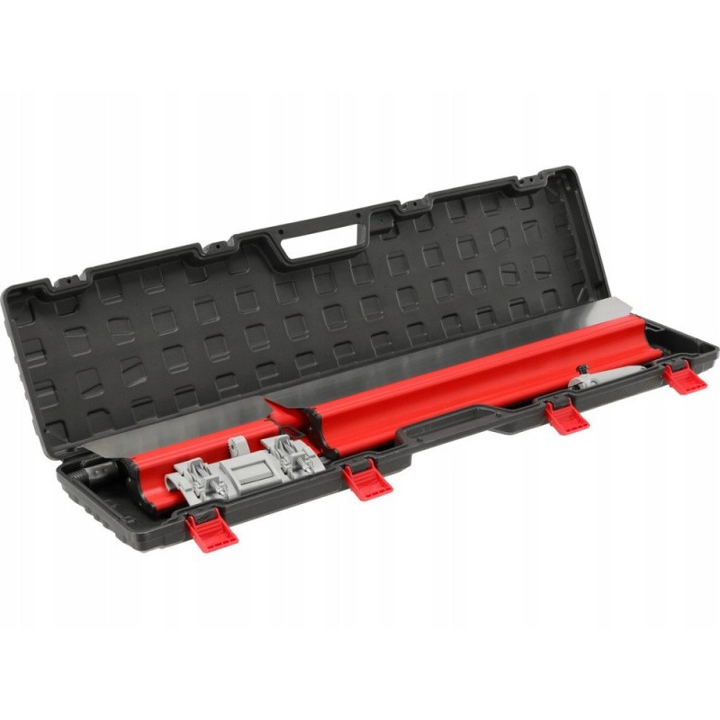 Das Set wird in einem robusten Koffer aus PP-Kunststoff geliefert, der eine bequeme Aufbewahrung und den Transport der Werkzeuge gewährleistet. Der mit vier Schnappverschlüssen verschließbare Koffer hat die Maße 926 mm x 223 mm x 72 mm, was ihn zu einer praktischen Lösung für jeden Heimwerker macht.
