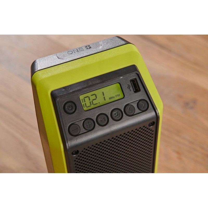 Der RYOBI 18V One+ Bluetooth-Lautsprecher ist einfach zu bedienen und eignet sich perfekt, um deine Lieblingsmusik im Freien, auf der Baustelle oder beim Campen zu hören. Er hat eine Bluetooth-Reichweite von 25 m. Außerdem kannst du AM/FM-Radio hören.