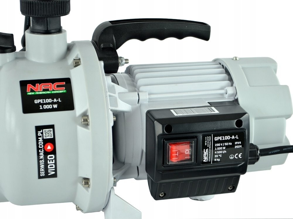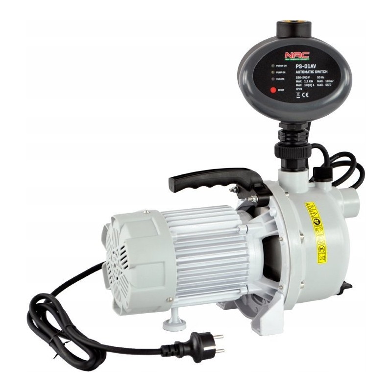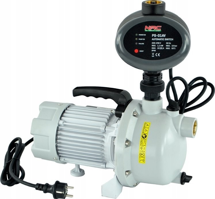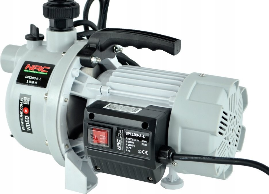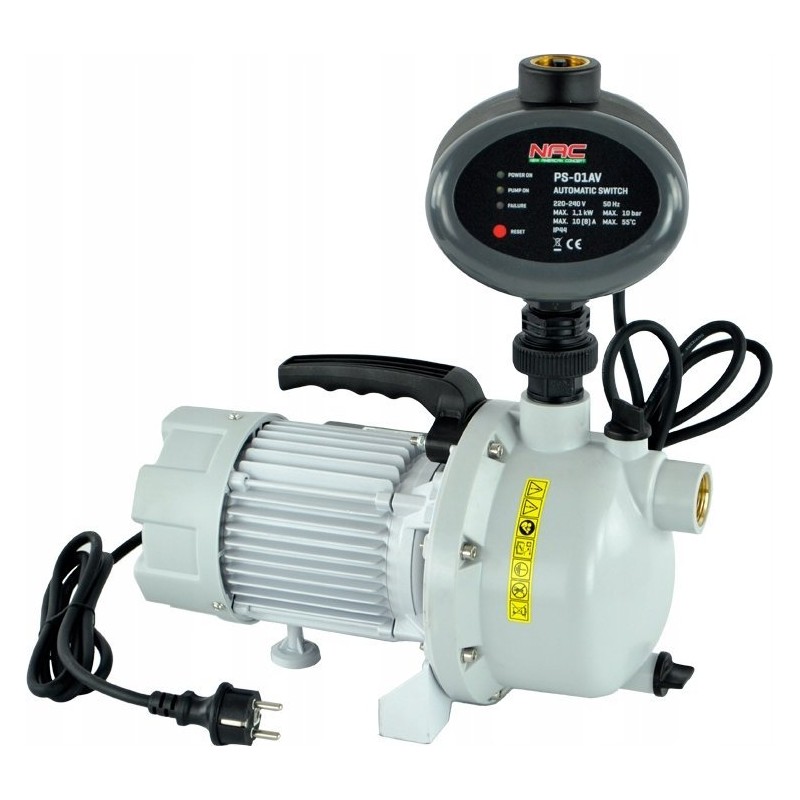 NAC-Gartenwasserpumpe mit einer Leistung von 1000 W und einer Förderleistung von 4500 Litern/Stunde mit automatischer Steuerung.