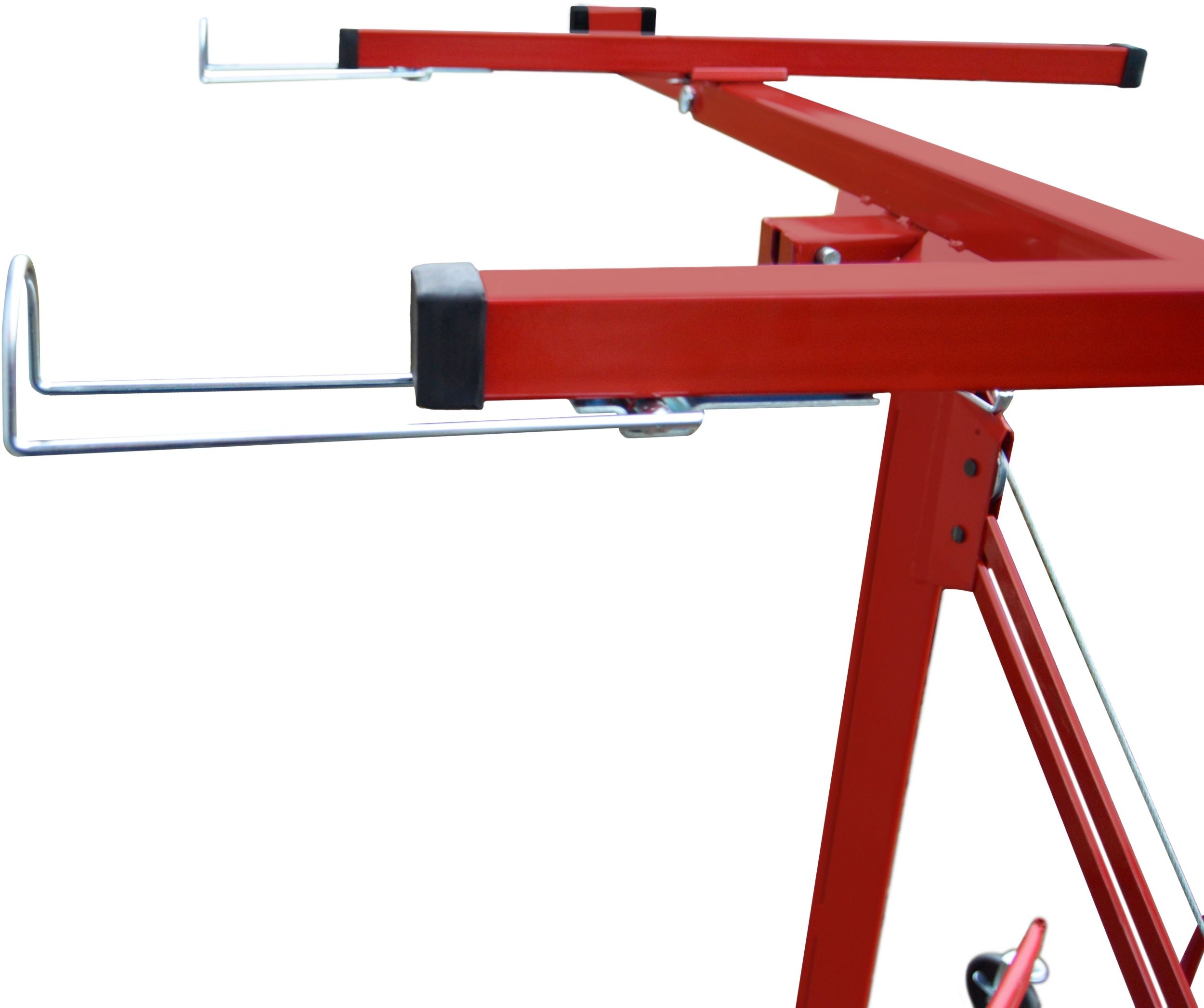 Der Heber zeichnet sich durch eine maximale Tragkraft von 68 kg aus, was für Stabilität und Sicherheit bei der Arbeit sorgt. Seine Konstruktion wurde im Hinblick auf eine einfache Montage und bequeme Lagerung im zusammengeklappten Zustand entwickelt, was ihn zu einer praktischen Lösung für jeden Anwender macht.
