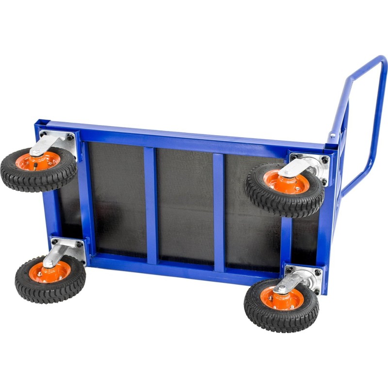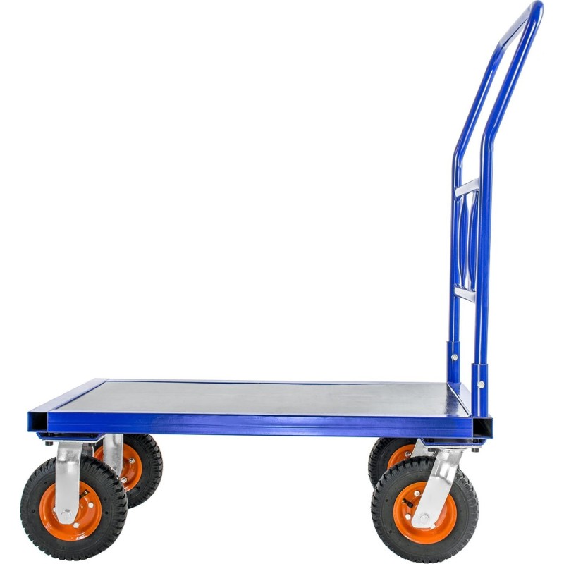 Der Wagen eignet sich für Lager und Hallen, erleichtert aber auch die Arbeit im Haus oder im Garten. Er ist ideal für den Transport schwerer Pakete und Gegenstände, und die robuste Konstruktion sorgt für Komfort und Sicherheit beim Transport. Die optimal dimensionierten Räder mit Profil sorgen für hervorragende Traktion, unabhängig vom Untergrund.