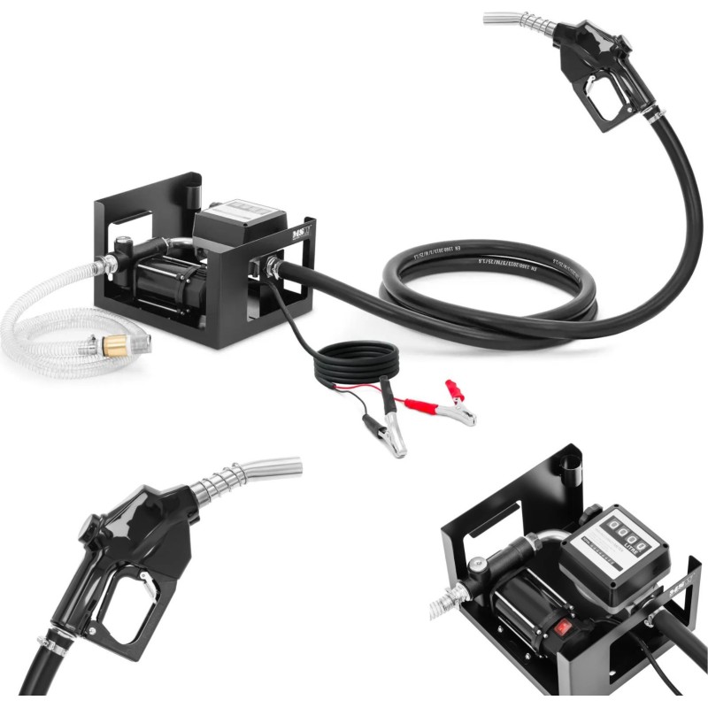 10062121 Die Dieselpumpe mit Durchflussmesser der Marke MSW bietet eine mobile Lösung, wenn Diesel oder Heizöl transportiert oder aus einem Tank entnommen werden muss. Die Mini CPN eignet sich sowohl für Werkstätten und Tankstellen als auch für Tankstellen für landwirtschaftliche Fahrzeuge. Der leistungsstarke 12-V -Kraftstoffpumpenmotor erreicht eine Förderleistung von 72 l/min , sodass Fahrzeuge schnell und zuverlässig betankt werden können. Auch das Umfüllen in einen anderen Tank ist mühelos möglich. Die Kraftstoffpumpe hat eine Ansaughöhe von 2 m und eine Förderhöhe von 14 m .
