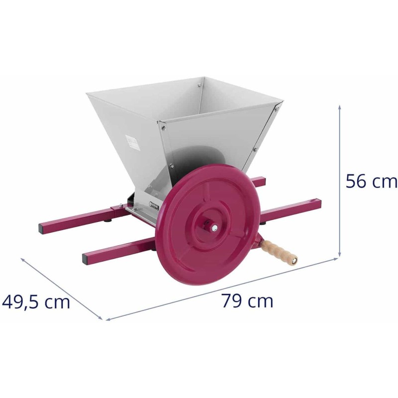 dem Traubenmahlwerk der Marke Royal Catering lassen sich die Früchte zerkleinern und so für die weitere Verarbeitung vorbereiten. Das Fassungsvermögen beträgt 27 l . Der 40 x 40 cm große Behälter ermöglicht es, große Mengen an Früchten auf einmal zu zerkleinern. Der große und ergonomische Griff aus Buchenholz liegt bequem in der Hand und ermöglicht eine mühelose Bedienung des Zerkleinerers. Das Gerät verfügt über eine robuste Konstruktion aus Eisen, Aluminium und Edelstahl. Die Klinge aus Aluminium zeichnet sich durch eine außergewöhnliche Leistungsfähigkeit aus.
