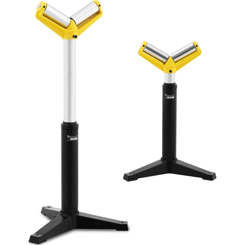 Der Rollenständer der deutschen Marke MSW eignet sich ideal für die Bearbeitung langer Werkstücke in Tischlereien oder Werkstätten, wo Bretter, Rohre, Flachstahl und vieles mehr geschnitten werden. Die V-förmige Konstruktion bietet hervorragenden Halt für schwere Werkstücke. Die robuste Konstruktion des Rollständers besteht hauptsächlich aus Eisen und hält dank ihrer soliden Bauweise einer Belastung von bis zu 800 kg stand. Die Rollen mit einem Durchmesser von 50,8 mm und einer Breite von 125 mm sind aus Stahl gefertigt. Die einstellbare Höhe ermöglicht die Anpassung des Geräts an die jeweilige Arbeitsaufgabe. Die Höhe des Ständers lässt sich im Bereich von 635 bis 1035 mm einstellen. Seine Konstruktion ist zusammenklappbar, was die Lagerung erleichtert. Der dreiflügelige Sockel sorgt für Stabilität.