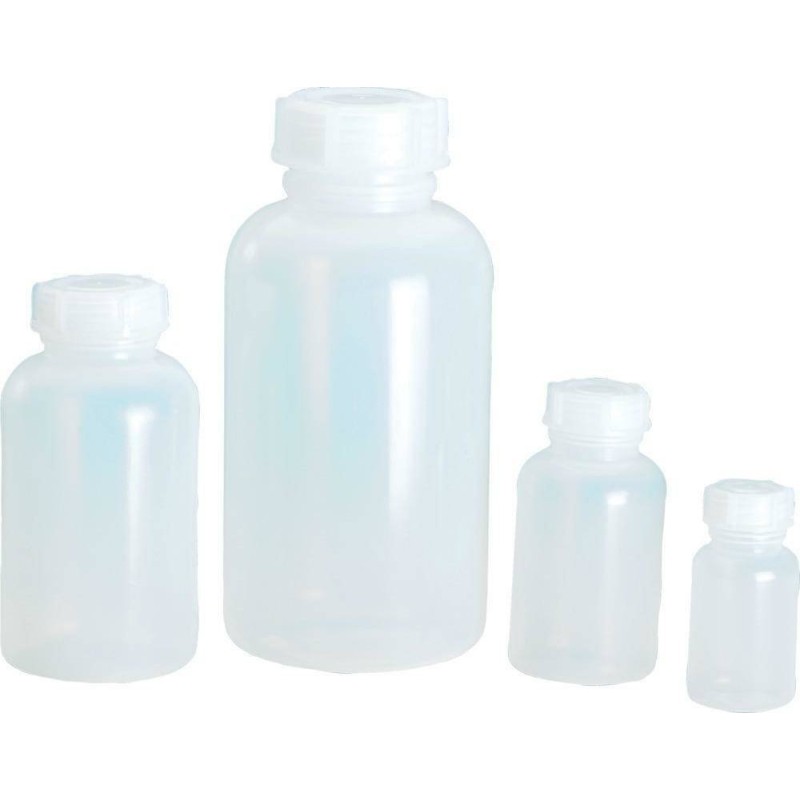 Flasche mit weitem Hals •vielseitig einsetzbar •zur Aufbewahrung von Proben usw. •geeignet für die Aufbewahrung von Lebensmitteln, sehr hohe chemische Beständigkeit gegen Säuren, Laugen und andere Chemikalien •aus Polyethylen (LD-PE) •in Naturfarbe