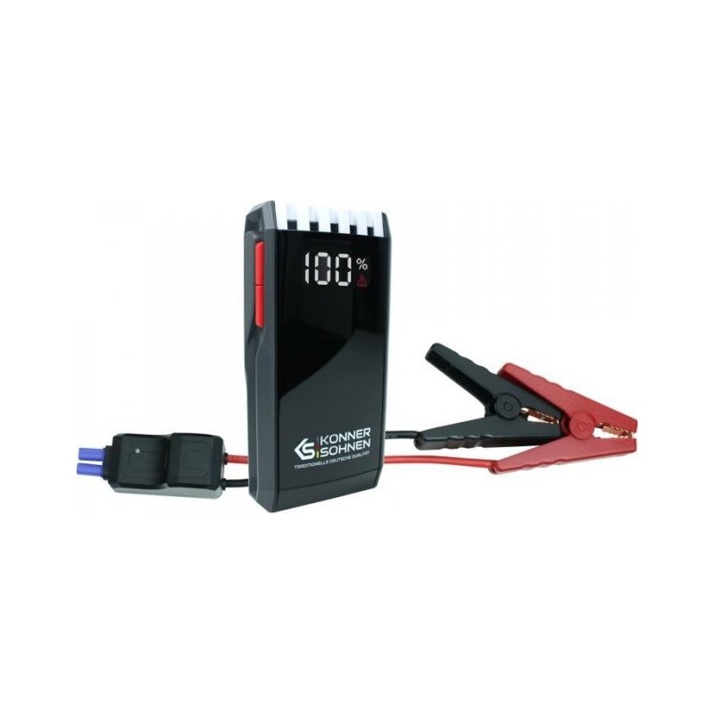 Technische Daten: Typ des integrierten Akkus: Lithium-Ionen-Akku, mAh: 18000 USB-Ausgang: 5 V/3 A, 5 V/2 A LED-Lampe: + Nenn-Einschaltstrom, A: 700 Spitzenstrom beim Einschalten, A: 1400 Ladezeit des Geräts, Stunden: 4–5 Betriebstemperatur, °C: -20 °C ... +60 °C Nettoabmessungen (LxBxH), mm: 193 x 98 x 39 Bruttoabmessungen (LxBxH), mm240 x 152 x 95 Bruttogewicht, kg0,95 Beschreibung: Das Starthilfegerät KS JS-1400 ist unverzichtbar, wenn die Autobatterie leer ist oder ihre Energie nicht ausreicht, um den Motor zu starten, was besonders in der kalten Jahreszeit wichtig ist. Es ist mit einem hochmodernen, hochwertigen 18000-mAh-Lithium-Ionen-Akku mit einem hohen Startstrom von bis zu 1400 A ausgestattet, der es ermöglicht, Fahrzeuge mit Benzinmotoren bis zu 10 Litern Hubraum und Dieselmotoren bis zu 6 Litern Hubraum innerhalb weniger Sekunden zu starten. Die Klemmen verfügen über eine zusätzliche Verbindung der Befestigungsplatten mittels eines Kabels, wodurch die Befestigungsfläche vergrößert und der Widerstand bei der Kraftübertragung verringert wird. Das Gerät KS JS-1400 ist mit zwei USB-Ausgangsanschlüssen mit einer Stromstärke von 2 A und 3 A ausgestattet, was zum Laden vieler verschiedener Geräte ausreicht. Das praktische und kompakte 3-in-1-Ladegerät KS JS-1400 passt in das Handschuhfach Ihres Autos und wird mit einer Aufbewahrungstasche, einem Kabel mit Batterieklemmen und einem Ladekabel für Ihr Gerät geliefert. Jetzt benötigen Sie nur noch minimalen Aufwand, um den Motor Ihres Autos zu starten. ...